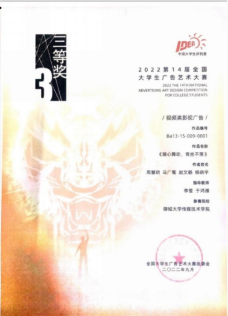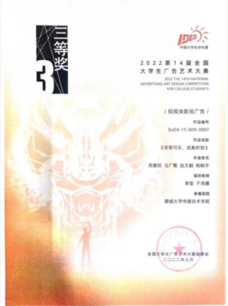 图1 2022第14届全国大学生广告艺术大赛国赛三等奖